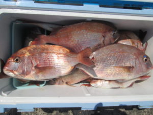 クーラー満タン!大物は出なかったが0.8~1.5Kのタイが大漁でした。