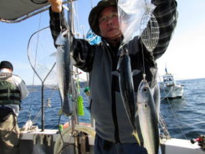 1月6日(土) 湾奥 大物五目 ブリのアタリは何度かあったが、あがったのは3本。上の姶良市の桑畑様のブリは107㎝・13K! 下は鹿児島市の水谷様。船釣りは初めてで8Kのブリを2本!