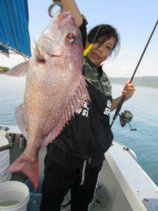 2018年8月27日 / 最終更新日時 : 2018年8月27日 ayamimaru 最新釣果 8月27日 一つテンヤ 良く行くポイントはサメが異常に多く釣りにならないので新しい場所へ釣行。大潮で潮が早く苦戦したが釣果はまずまず。 鹿児島市の村松さん(17歳)。彼女の今日一番は55㎝! 鹿児島市の村松君(15歳)。
