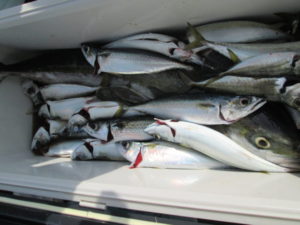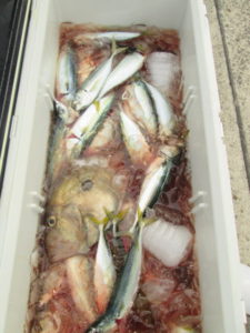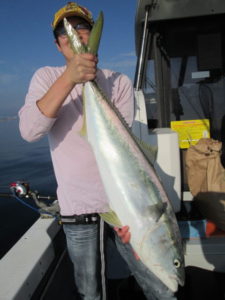 サバを餌に大物のブリを釣られた姶良市の東様。サバを狙えば数釣りが楽しめる。形も大きくなってきた。