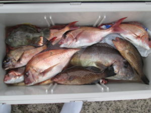 2019年4月5日 / 最終更新日時 : 2019年4月5日 ayamimaru 最新釣果 4月5日 湾口一つテンヤ 湾口の魚影は凄かったが、大潮なのに潮が全く流れず食いが悪く釣果はタイ23枚、オオモンハタ8枚、カワハギ7枚、コロダイ等と少し湾口の釣果としては物足りなかった。