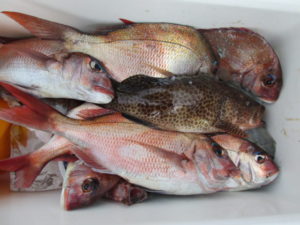 朝の上げ潮は全く当たりが無く、下げ潮が流れ出した9時半から当たりだした。タイは47枚。釣る人で11枚。