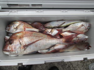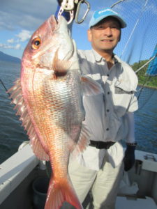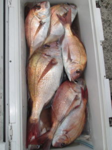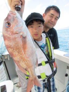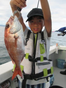 熊本市の的場君(8歳)良形のタイを沢山釣りました。