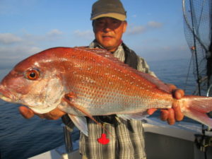 潮が流れず食いが悪く、釣る人で15枚程度。