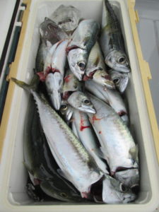 2019年10月7日 / 最終更新日時 : 2019年10月7日 ayamimaru 最新釣果 10月7日 五目(大物) 大きいサバが良く釣れている。大きいサバは43㎝。良形のアジやハガツオ、ハマチもまじる。早い人は11時前にクーラーに入り切れず納竿された。12時過ぎには全員満タンで帰港した。