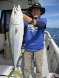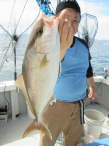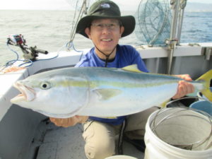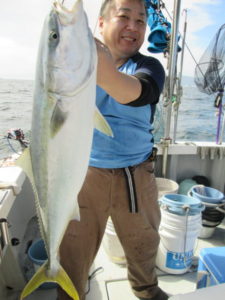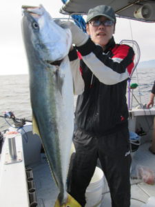 クーラーに入り切らず11時半に帰港。ブリは大きいもので11.5K。水面近くまでブリの群れが何度となく追いかけて来た。毎回当たりがあり切られも多かった。ハガツオも当たりは頻繁にあるがエサのアジ、サバが大きくて歯形だけついて来た。アジ・サバは良く釣れる。