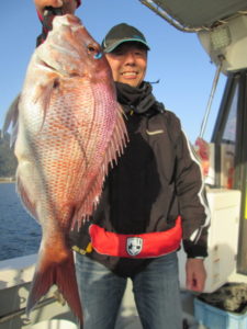 タイは良く釣れている。0.4~2Kを1人20~40枚。