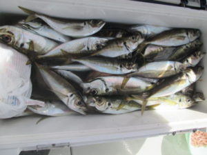大潮で流れが速く釣り辛かったがアジは入食いだった。大物はブリ2本。