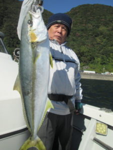 良形のヒラマサが上がった。大物もヒットするがリーダーが細いと切られが多い。タイも小振りが多くなったが釣れている。