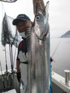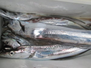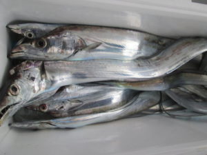 タチウオ爆釣中!今日は全体的に形が良く指5~6本も多かった。釣果は一人20~40本。