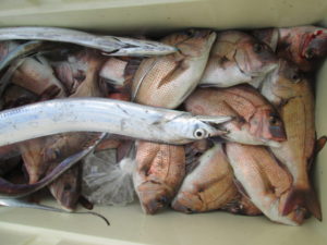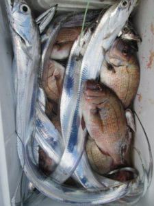 2021年12月12日 / 最終更新日時 : 2021年12月12日 ayamimaru 最新釣果 12月12日 タイテンヤ ⇒ タチテンヤ タイテンヤからタチテンヤへのリレー釣り。タイは小振りが多かったが数は上がった。写真は56㎝のキジハタ。タチウオはアタリは多かったが釣り時間が1時間弱と短かく釣る方で5本。
