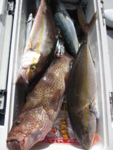 2022年11月6日 / 最終更新日時 : 2022年11月7日 ayamimaru 最新釣果 11月6日 泳がせ釣り 2人での釣行。釣果はカンパチ、ブリ、オオモンハタ等。 (11月2日の写真)大人は大物仕掛けで何度も切られ誰も上げられなかったが西君10歳はタイテンヤのタックルでブリを釣り上げた。