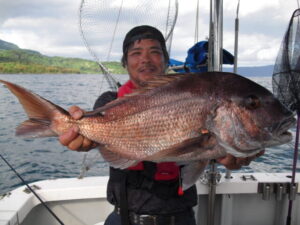 1人で乗船され8時までキス釣り、その後タイテンヤをされた。キスは良形が入食い状態。タイも好調で11時半には帰港しました。