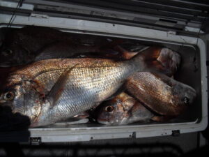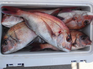 2024年5月29日 / 最終更新日時 : 2024年7月18日 ayamimaru 最新釣果 5月29日 タイ 前日の大雨の影響で上潮が物凄く速く底は逆潮で釣り辛い状況の中でタイを1人で46枚釣られた。テンビン・チョロ釣りの1人の記録としては最高記録です。2個のクーラー満タンでした。