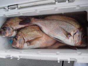 大潮で潮が速く釣り辛かったが釣れた方は良形のマダイを13枚釣られた。