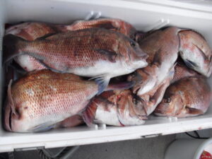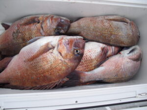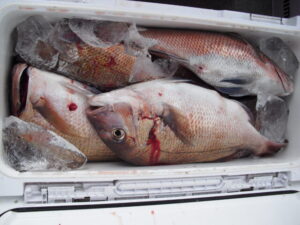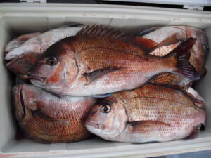 8歳の妹と11歳のお兄ちゃんが爆釣し10時半にはクーラーが満杯になりました。なかには76Lのクーラーを満杯にされた猛者もいました。
