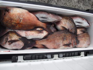 クーラー満タンで早帰り。釣られた方は76Lのクーラーを満タンにされていた。