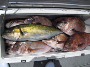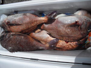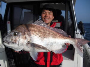 全く潮が流れず食いが悪くバラシも多かった。80㎝の大ダイは4日の釣果。
