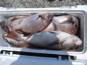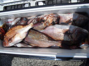 大潮で潮が速く釣り辛かった。釣果は0.8~2K程度を1人10~15枚。