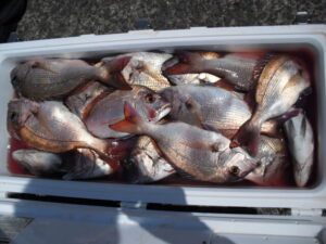 30~35㎝程の小振りのタイが入食いでクーラーに入りきらなくなり早帰りしました。
