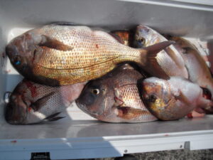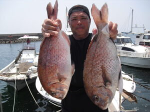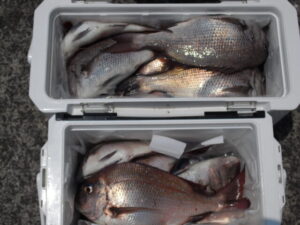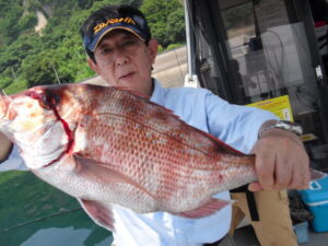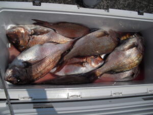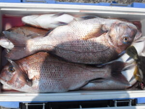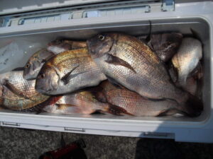 潮が異常に速く根掛りが多い釣り辛い中で釣り頭は1~2.5Kのマダイを20枚以上釣られた。